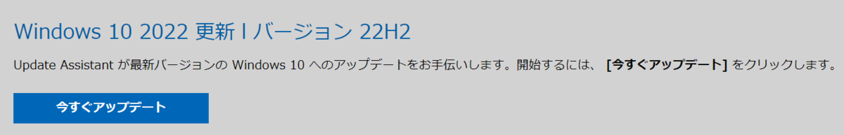 Windows 10が「20H2」より前のバージョンの場合、「Windows Update」を使っても、バージョンが一個あがるだけ(つまり古いバージョンのまま)などで、すぐに22H2にはたどり着きませんでした。もしかしたら、何回もやっていたら変わるのかもしれないけれど、多分時間がかかるので、方法2をやるのがおすすめです。
